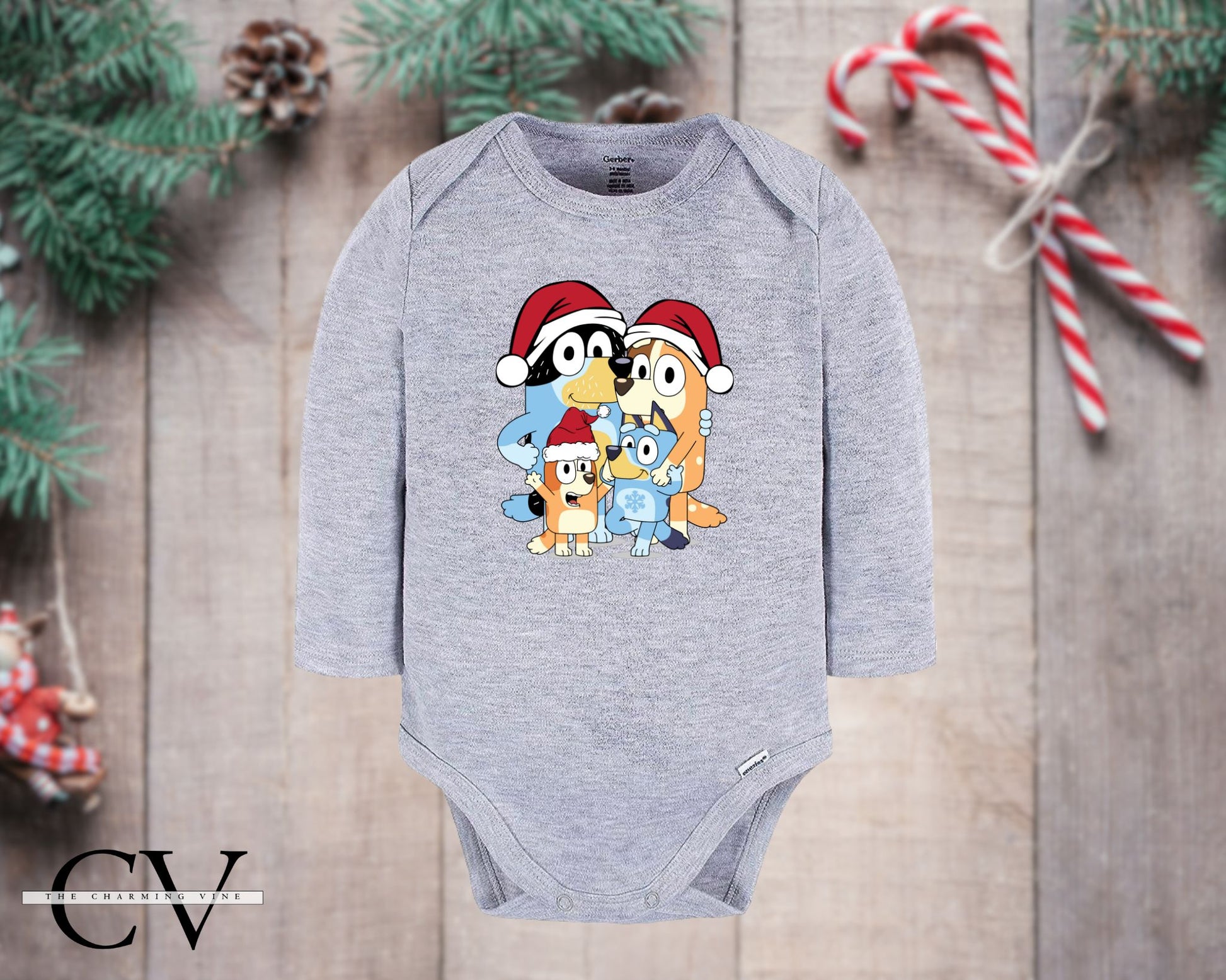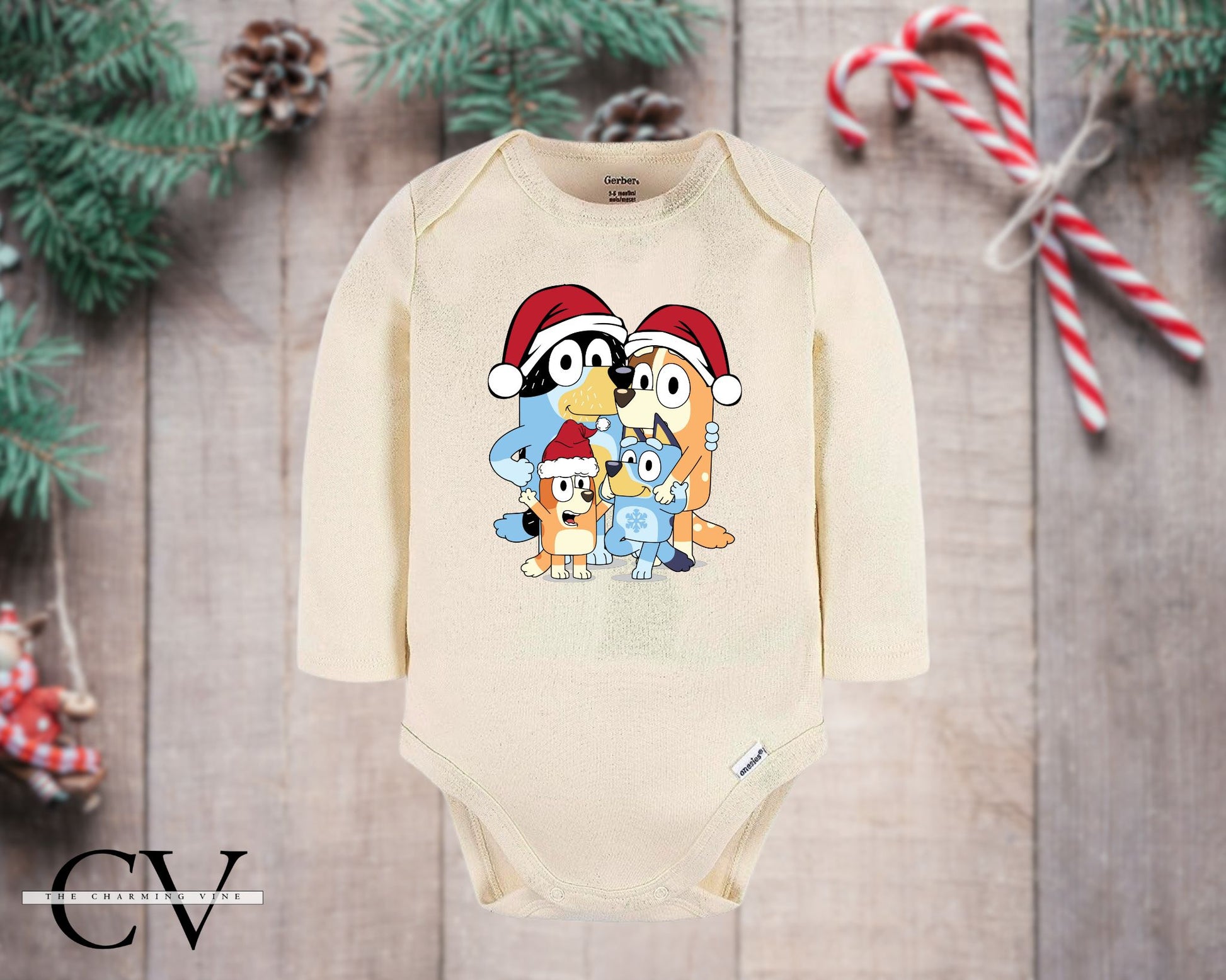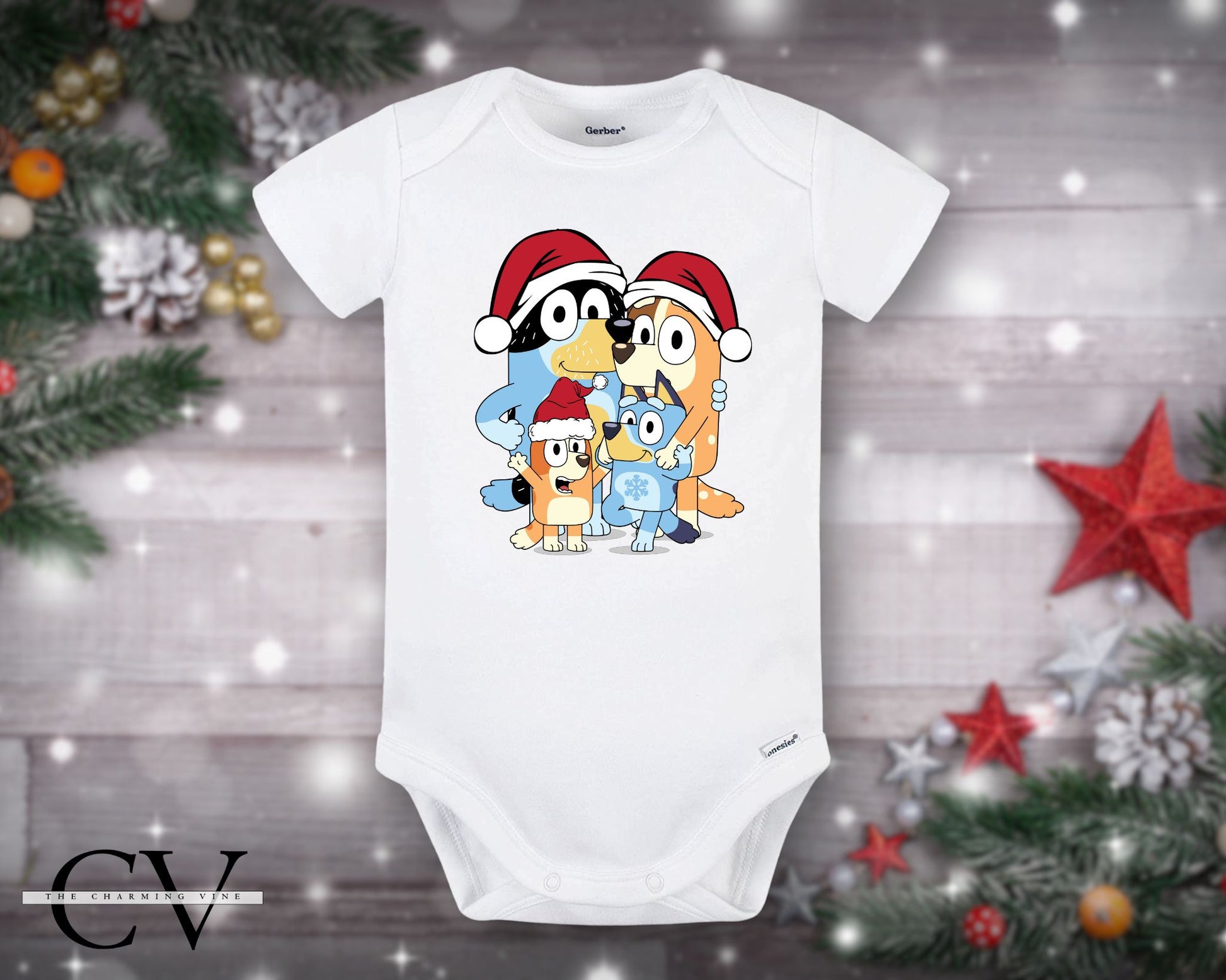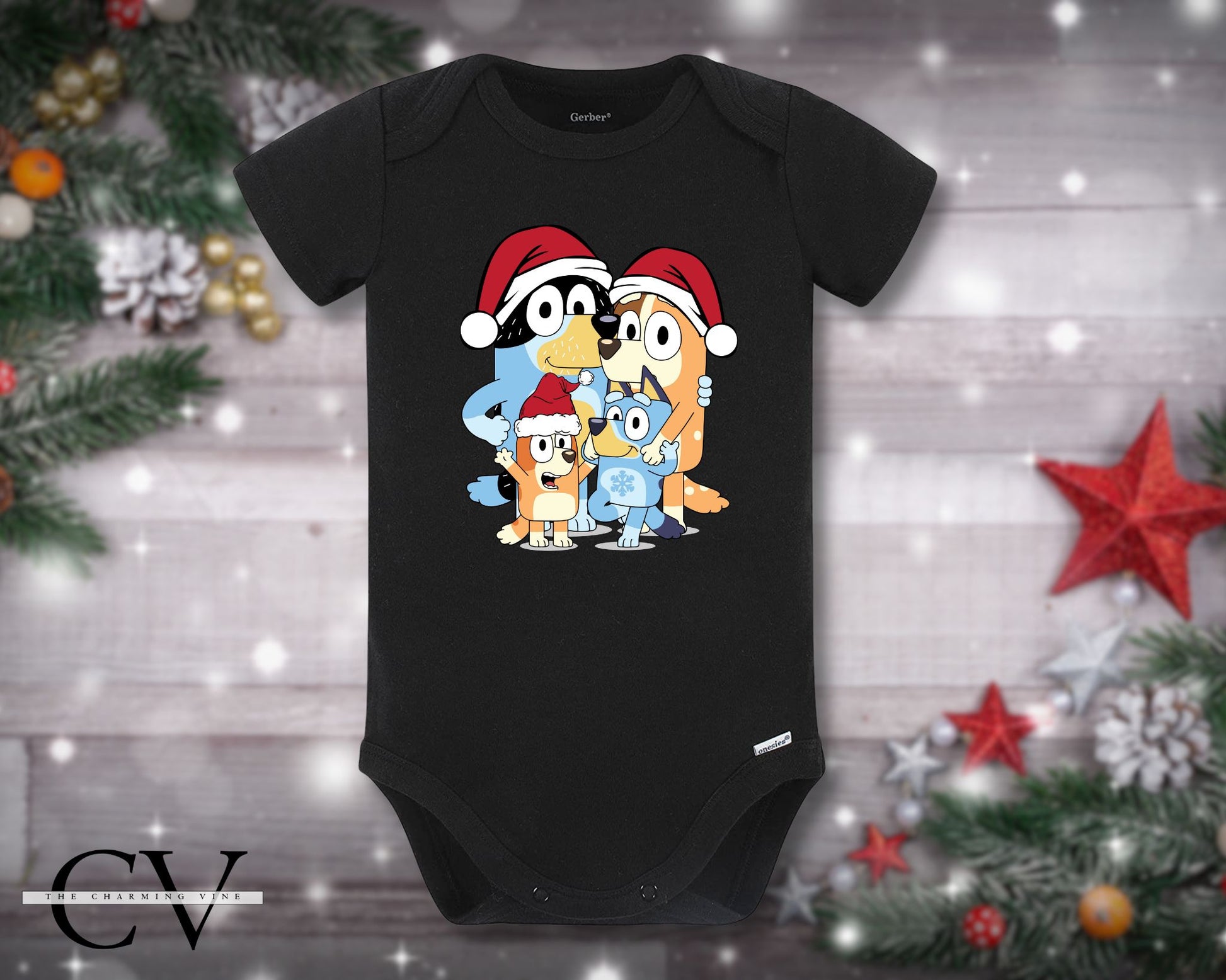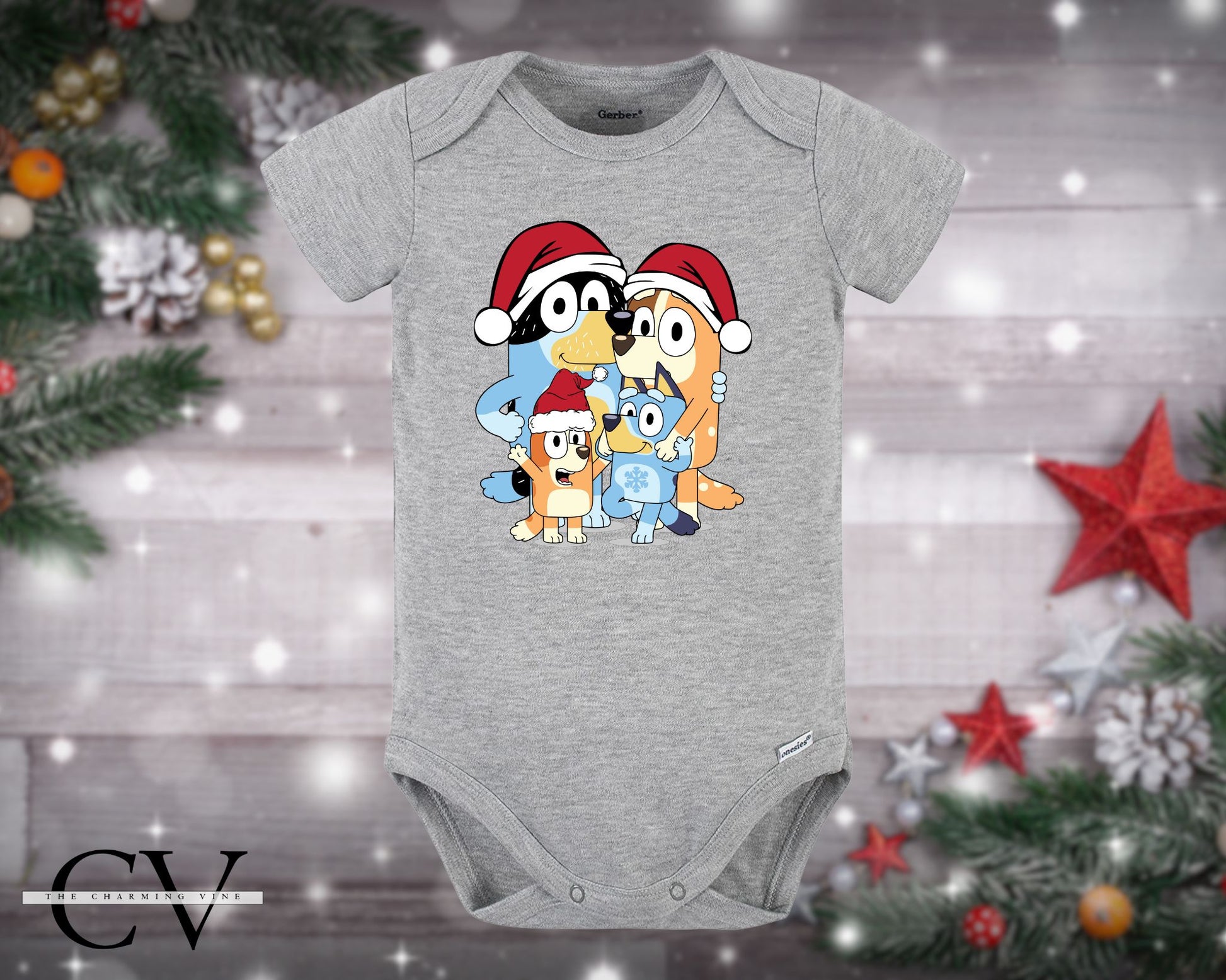 Introducing the perfect festive outfit for your little one! This Bluey Family Christmas Baby Onesie brings the Christmas cheer with its adorable design featuring Bluey and her family. Make sure your little one is ready for all the Christmas fun in style!