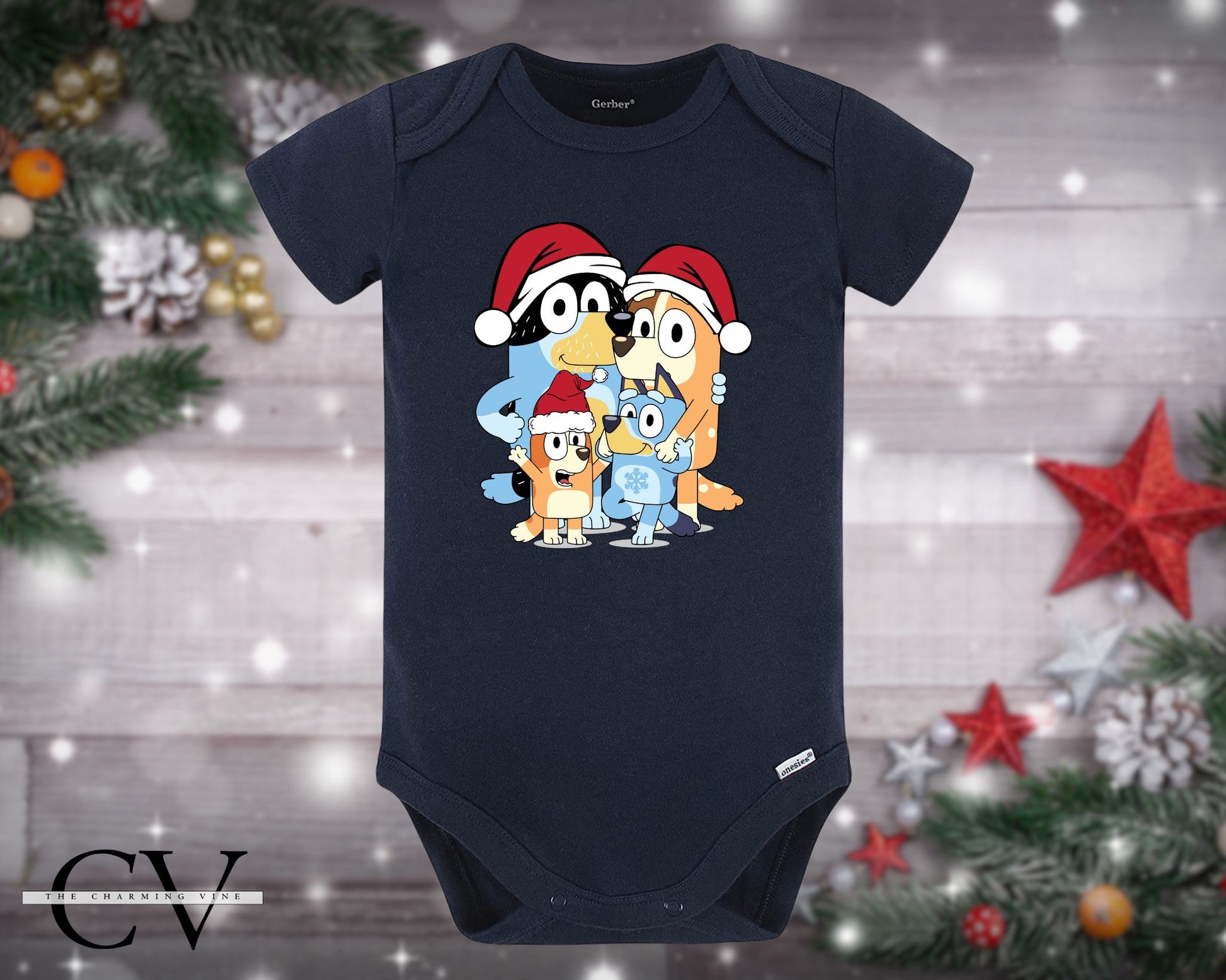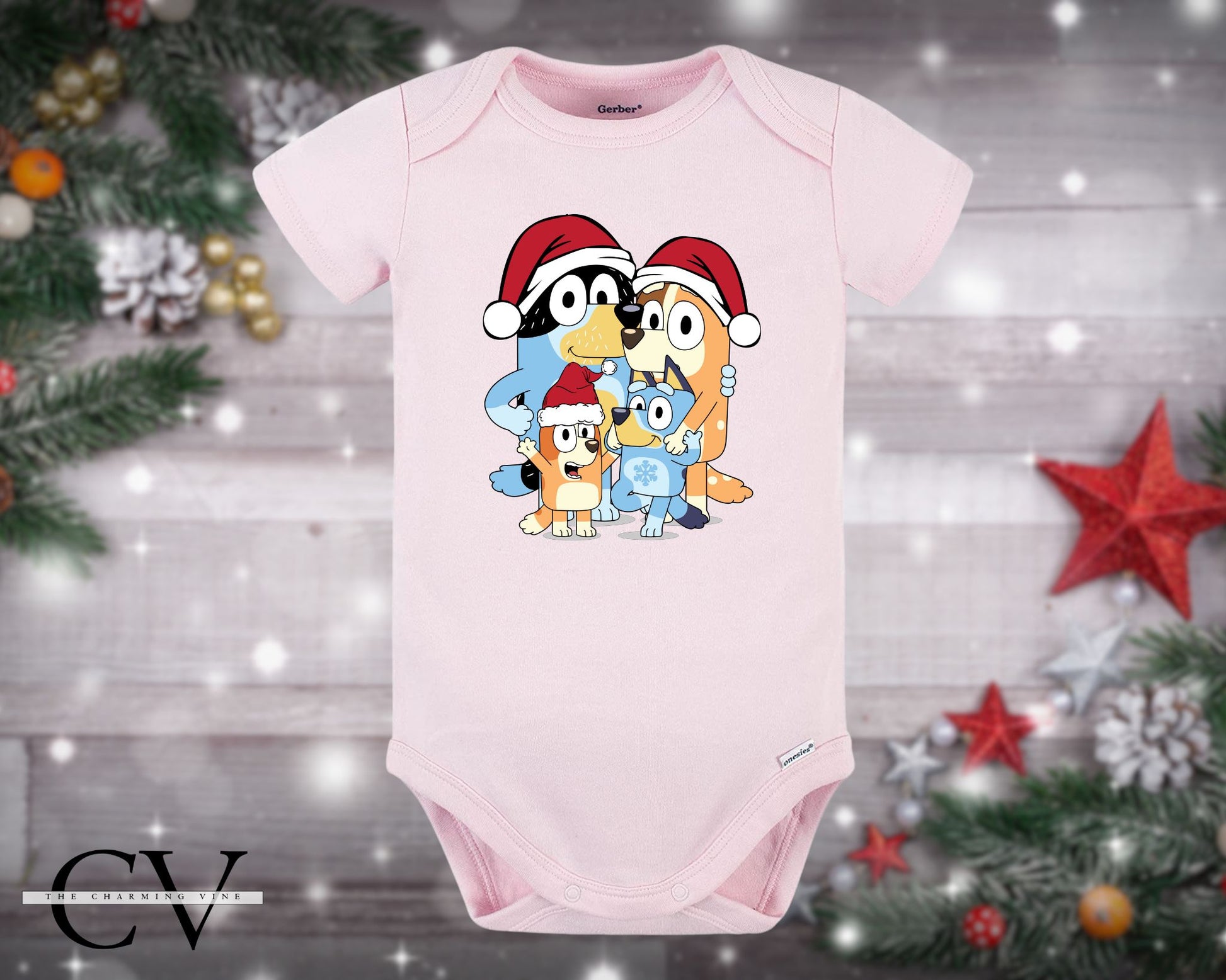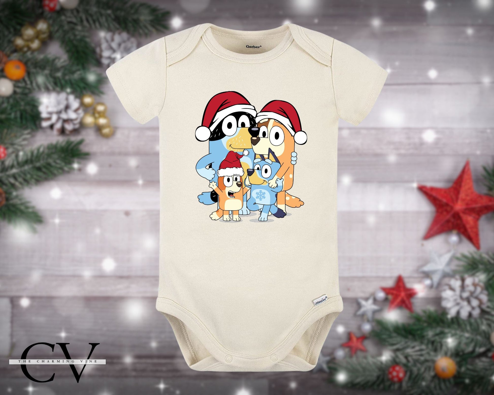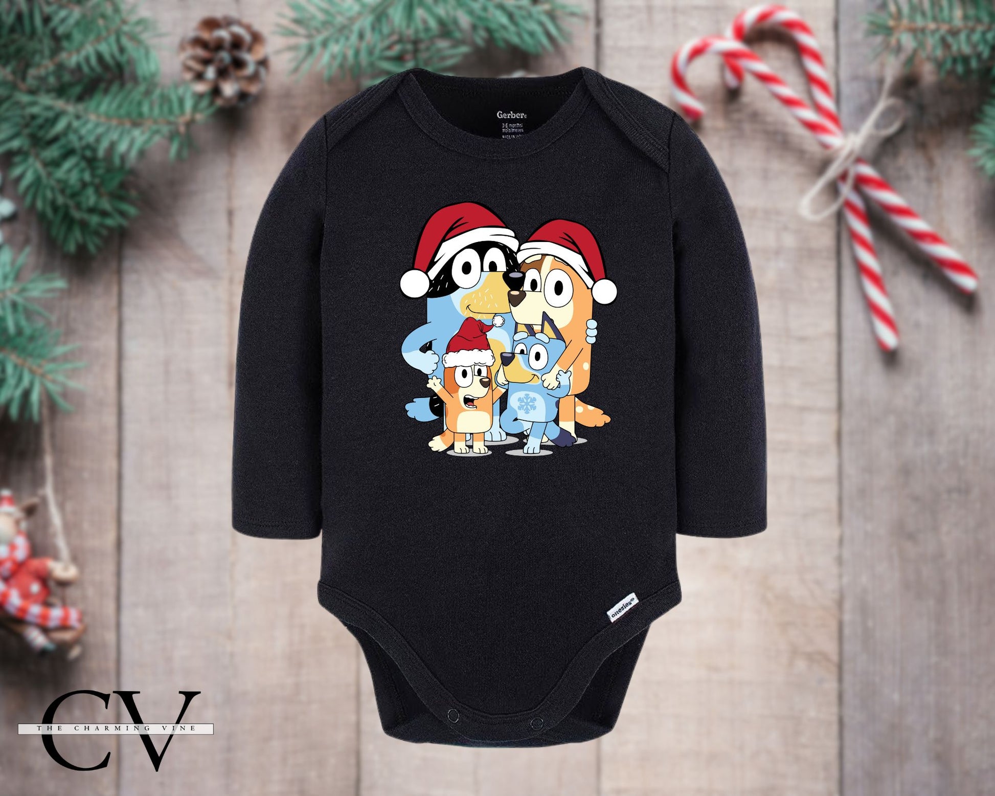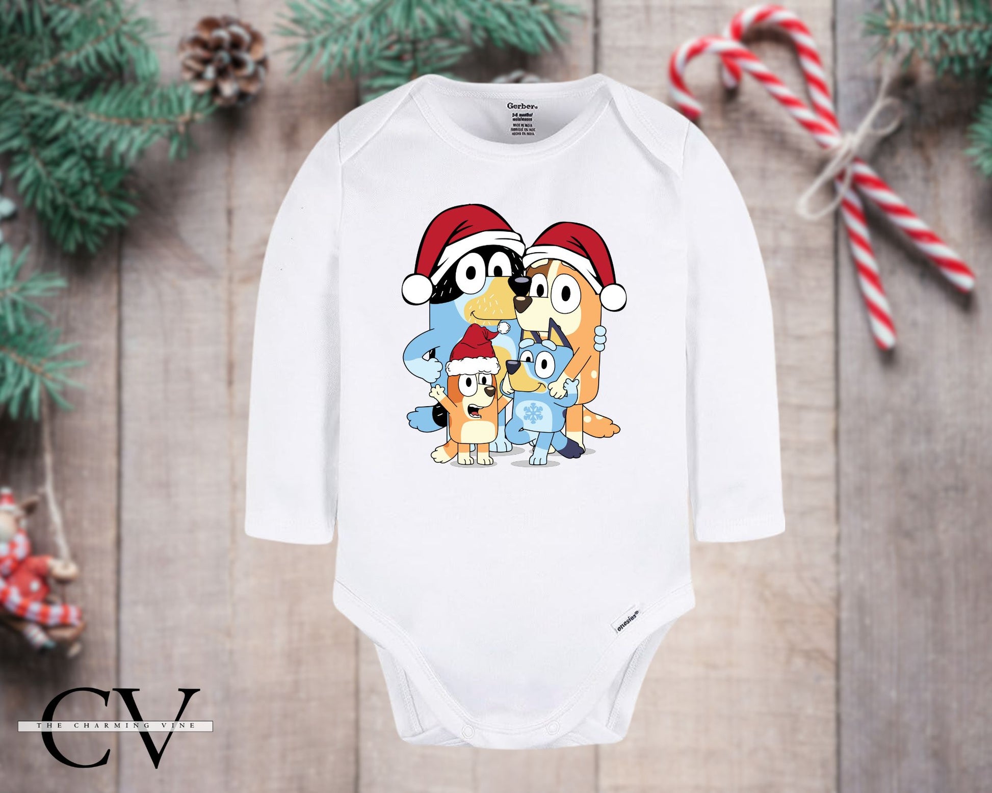 Introducing the perfect festive outfit for your little one! This Bluey Family Christmas Baby Onesie brings the Christmas cheer with its adorable design featuring Bluey and her family. Make sure your little one is ready for all the Christmas fun in style!
