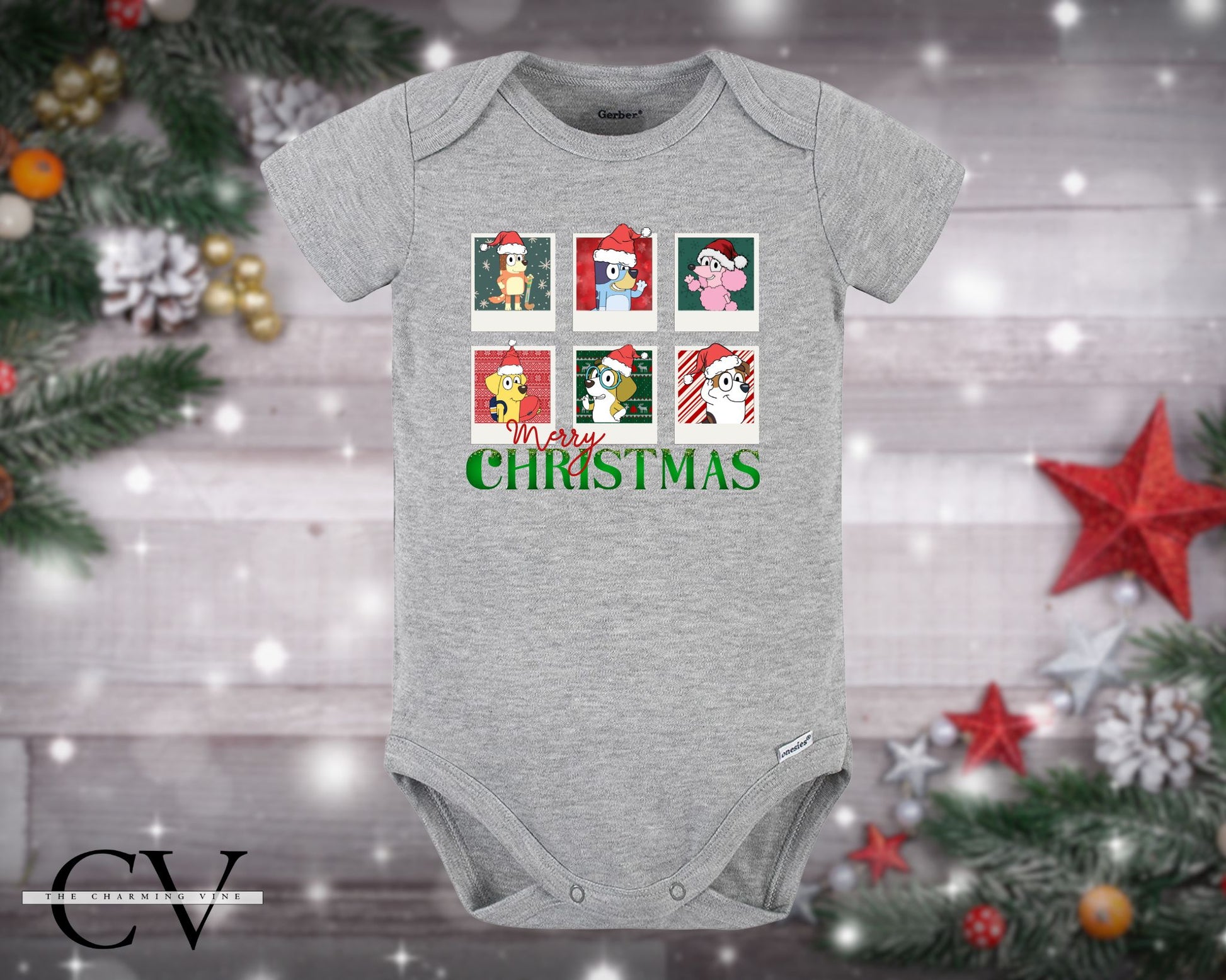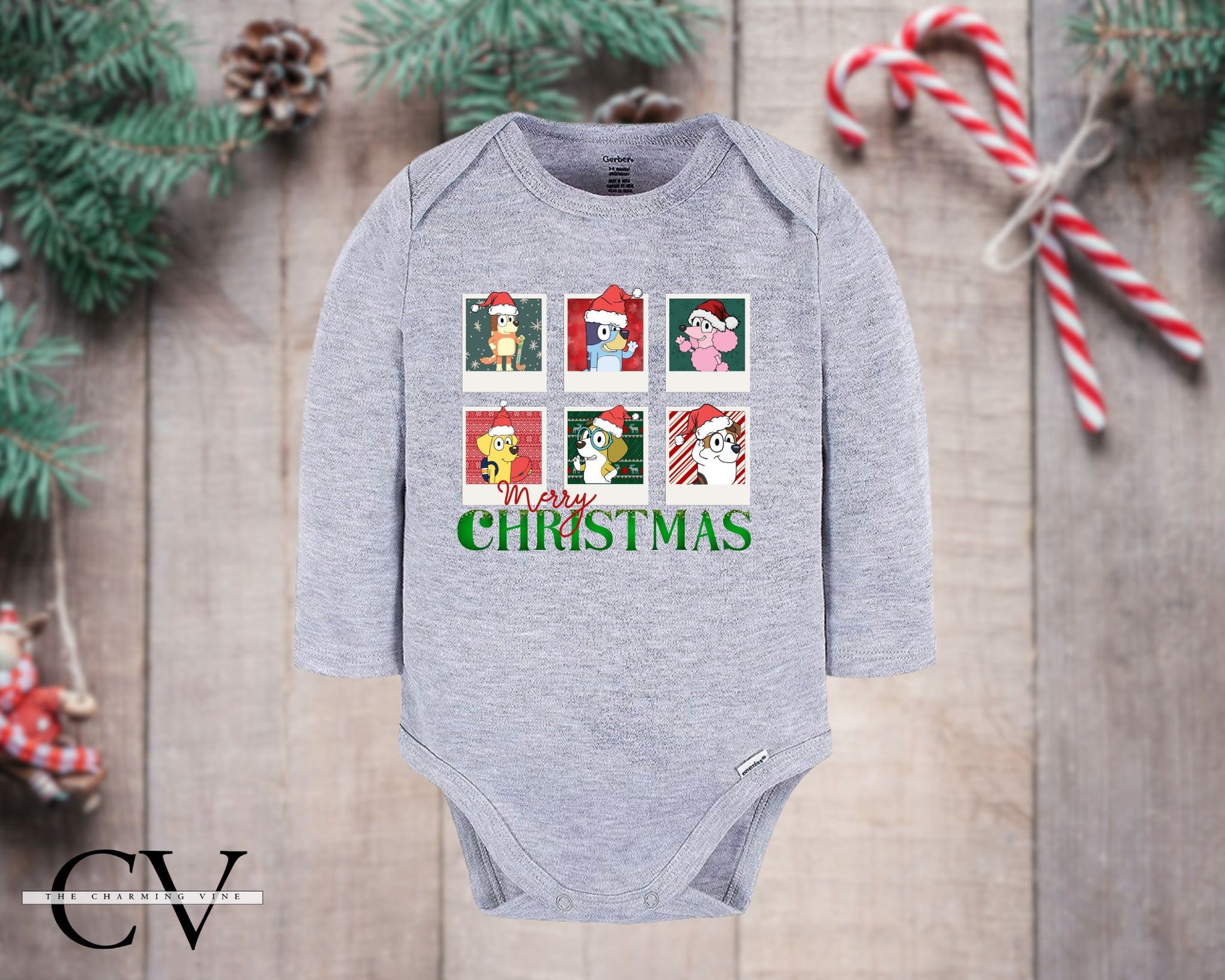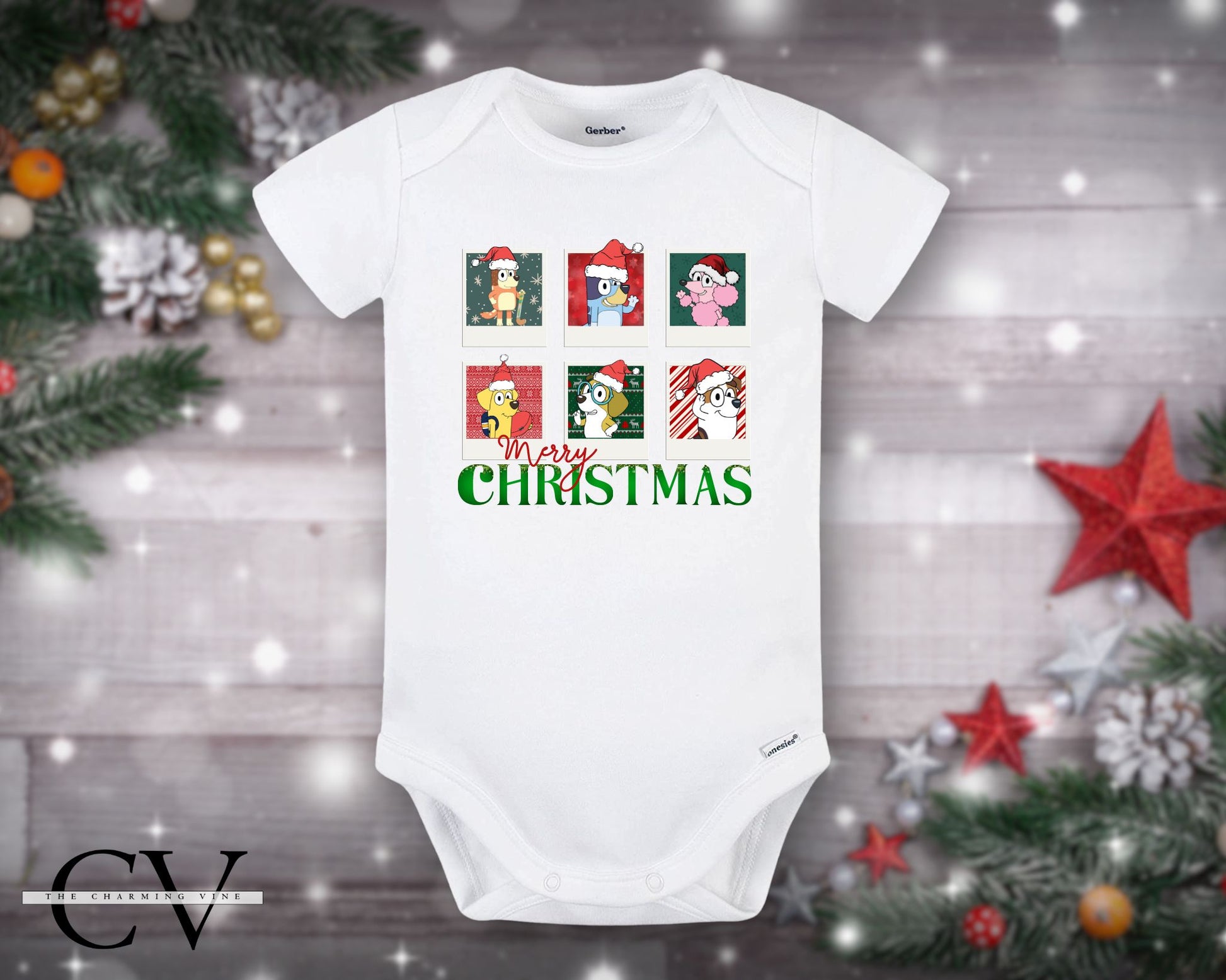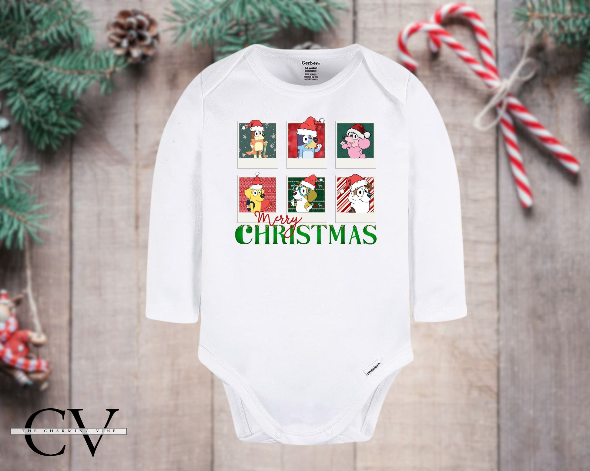 Perfect for the festive season, this Bluey & Friends Christmas Baby Onesie is sure to get your little one in the holiday spirit. Crafted from super soft fabric, it's sure to keep them warm and cozy all winter long! With all their favorite characters from the show, it's the perfect way to show off their Christmas cheer! 'Tis the season for Bluey and Friends!