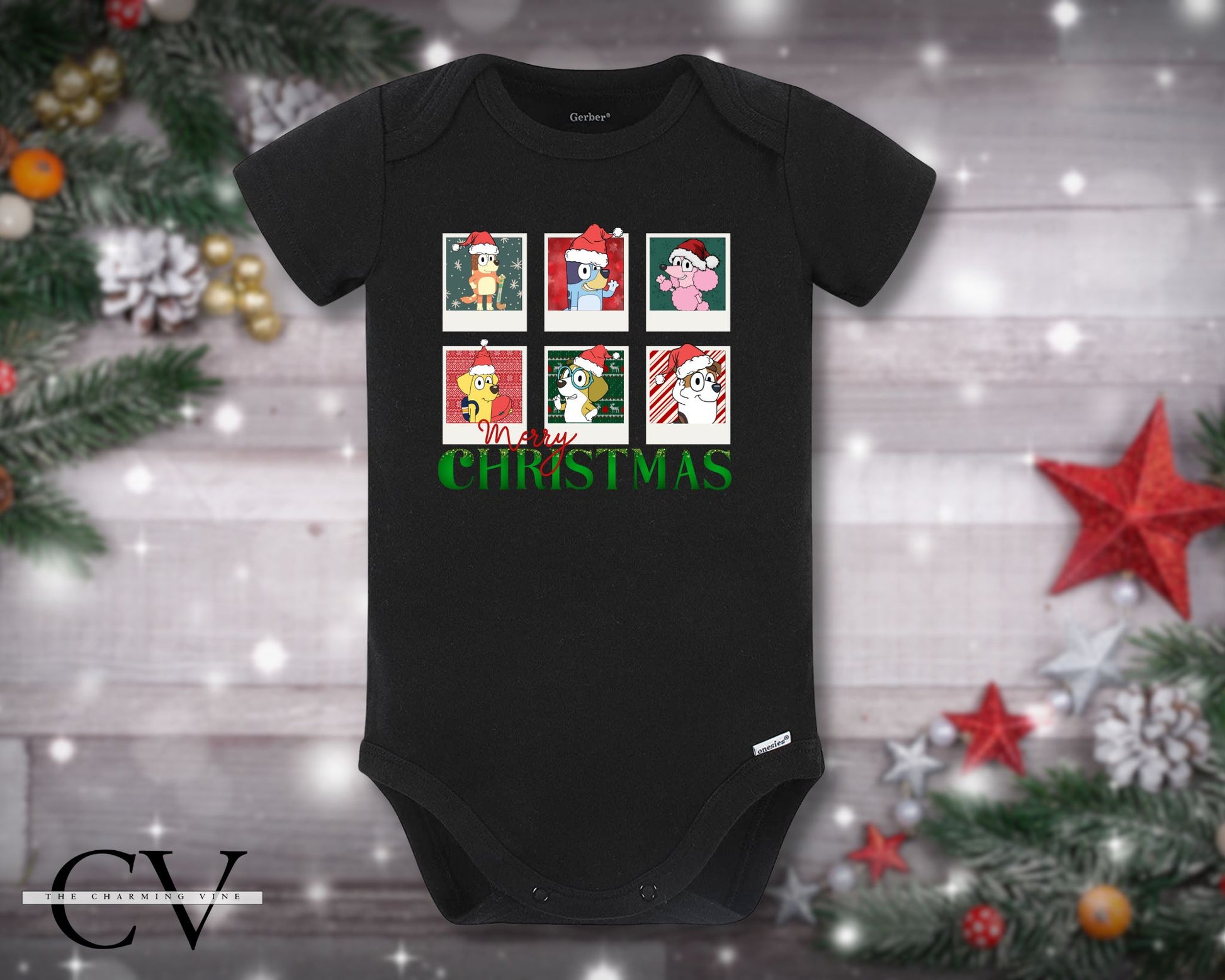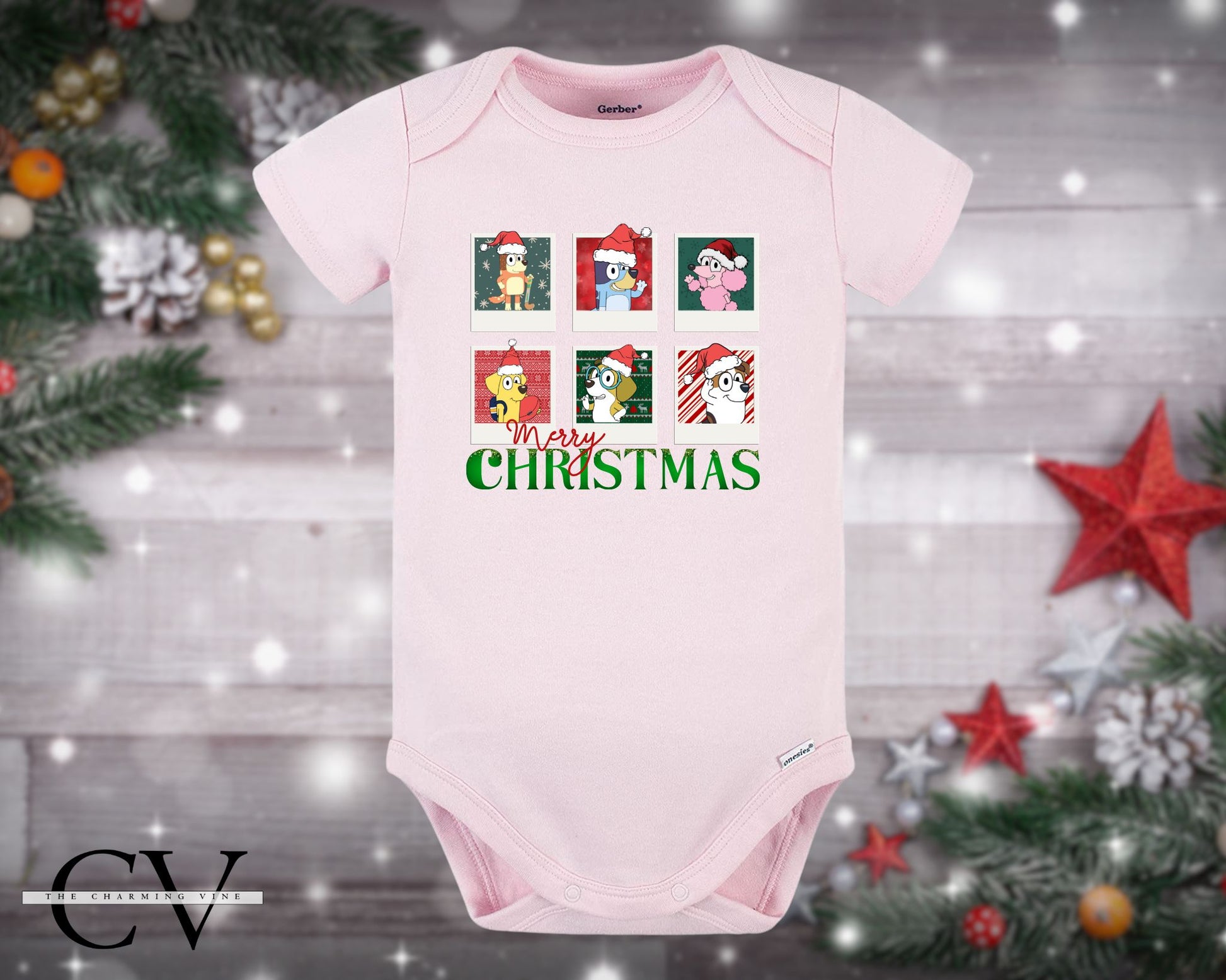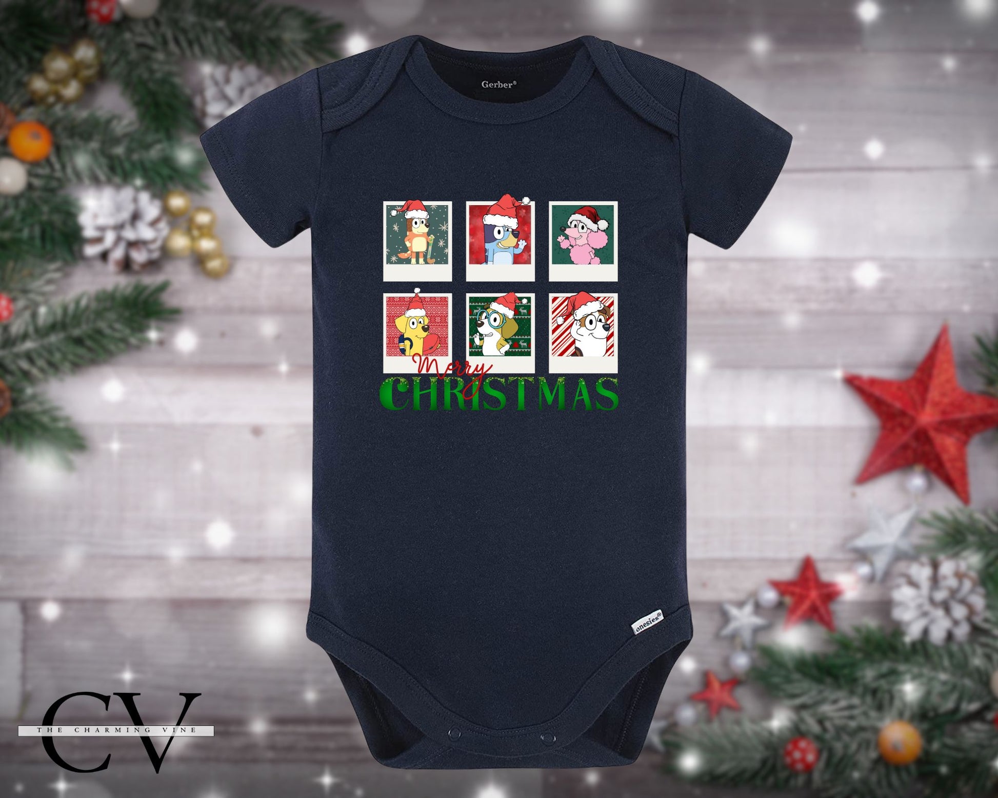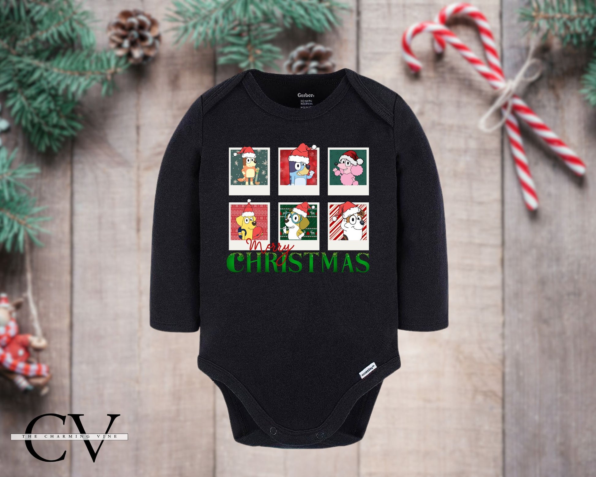 Perfect for the festive season, this Bluey & Friends Christmas Baby Onesie is sure to get your little one in the holiday spirit. Crafted from super soft fabric, it's sure to keep them warm and cozy all winter long! With all their favorite characters from the show, it's the perfect way to show off their Christmas cheer! 'Tis the season for Bluey and Friends!